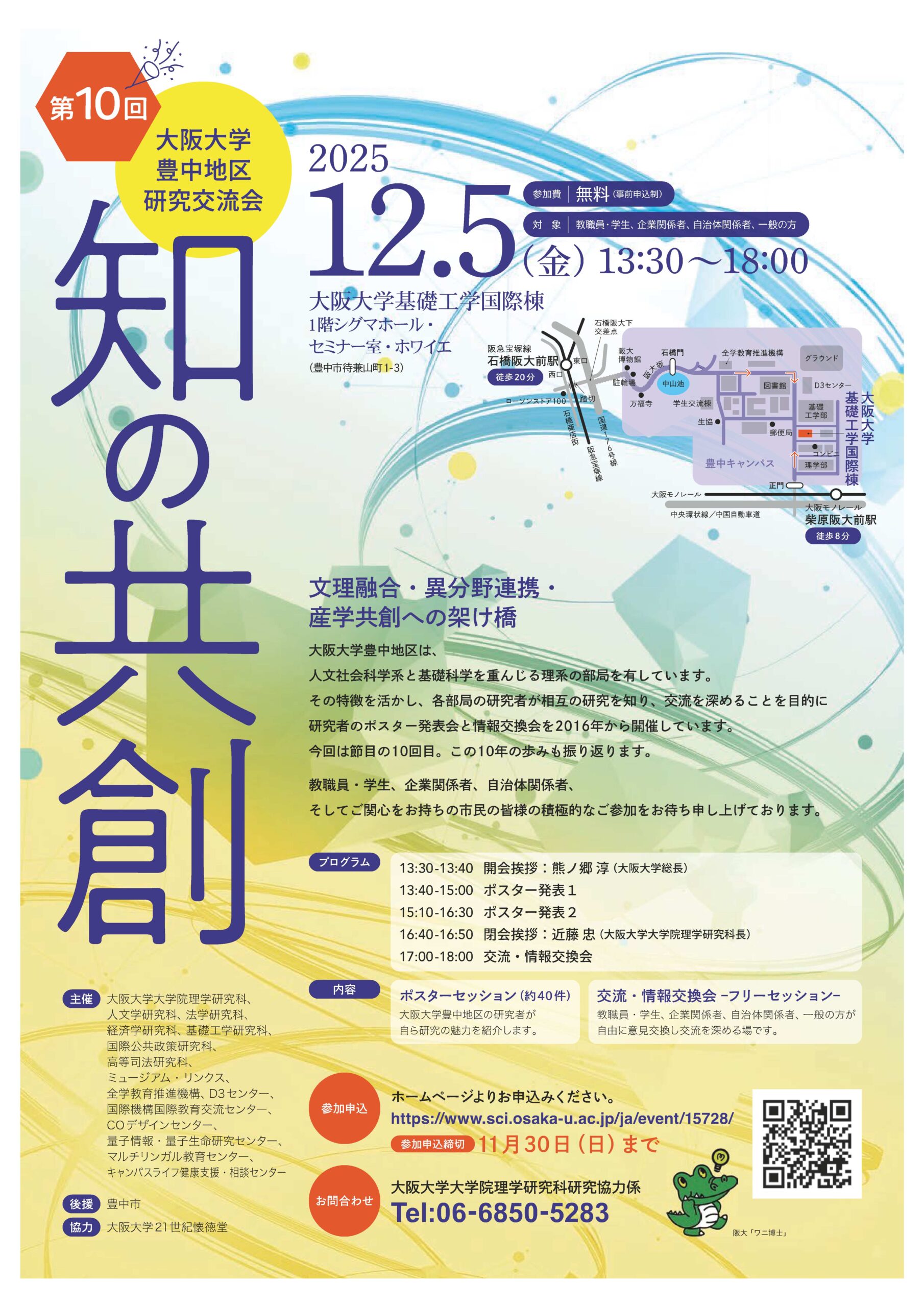 「第10回大阪大学豊中地区研究交流会」開催のご案内(12月5日)