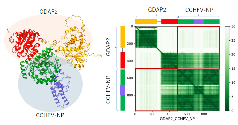 2025.12.05強毒性ウィルスとヒトタンパク質間相互作用のデータベースを安全・迅速に構築する本研究では、致死率が高く感染リスクもあるクリミア・コンゴ出血熱ウイルス(CCHFV)に着目し、そのタンパク質とヒト細胞内のタンパク質がどのように結びつくかを予測・解析します。AIによる構造予測技術(AlphaFold2)と、試験管内での安全な無細胞実験を組み合わせることで、ウイルスの働きを理解しやすくし、将来的な治療法の開発や感染症対策に役立つデータベースの構築を目指します。