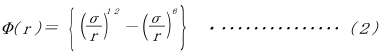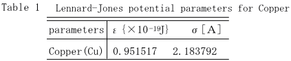 Φから計算する。今回の計算では表1に示した銅に対するパラメータを使った以下に示すLennard-Jones(LJ)ポテンシャルを用いる。