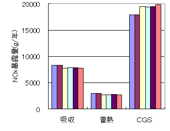 xの環境負荷の定量化を行った。また、エネルギーシステムが使用するエネルギーとして電力、ガス等があり、系統電力を使用することにより発電所周辺の環境が、またCGSなどオンサイトでガスを使用することにより、対象建物周辺の環境がそれぞれインパクトを被ることになる。そこで本研究ではこのような地域の差異を考慮するためにNO