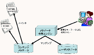 によって分類されたメタデータを検索対象および検索者のクエリの元となる要素に付加させ、