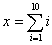 for(i=1;i<11;i++){x=x+i}