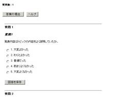 一方、教官側は、授業教材に関しては、これまで教官の方が作成していたものをHTML形式にし、WebCTにアップロードすることで学生は自由に閲覧することが可能です。また、プレゼンテーションの採点では、アンケートの作成を行いWebCTに登録するだけで、採点ツールを容易に作成することが可能です。また、これまで煩雑な作業であった採点結果の集計作業に関しても、WebCT内で自動的に行うため、授業資料の作成により集中することができます。以上の機能はWebCTが標準で持っている機能であり、教官はその機能を容易に使用することができます。