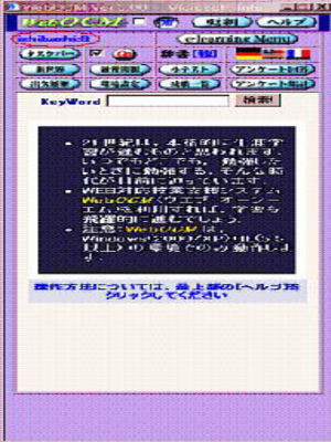 3.の「エキスパートシステム」は、ワンタッチ辞書機能の応用であり、単語のように分かち書きされていない文字データ(キーワード)に関して、そのキーワードに対する何らかの情報を、サーバ側に用意されているデータベースファイルから瞬時に取得してクライアントのブラウザに表示する機能である。すなわち、キーワードとそれに対する情報をデータベース化してサーバ側においておくだけで、このエキスパートシステムを利用することができる。