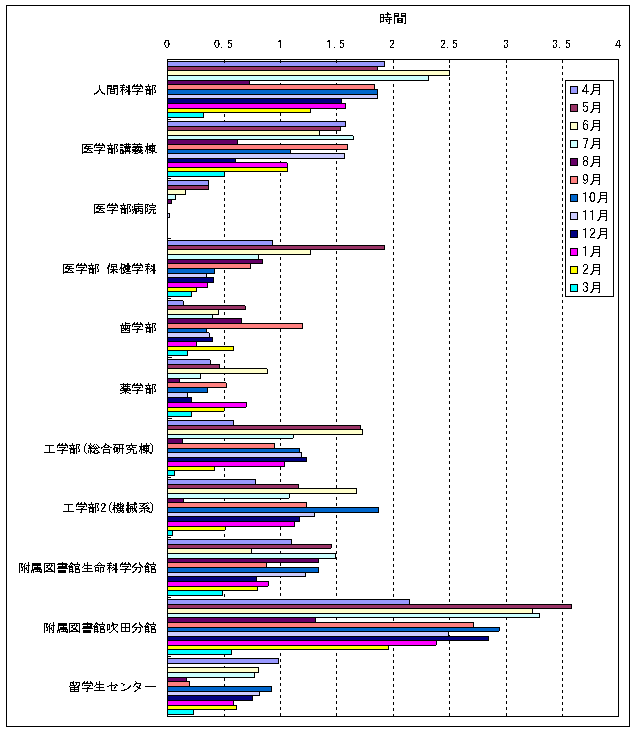 | 留学生センター | 98 | 35 | 50 | 19 | 19 | 17 | 116 | 58 | 28 | 38 | 42 | 29 |
