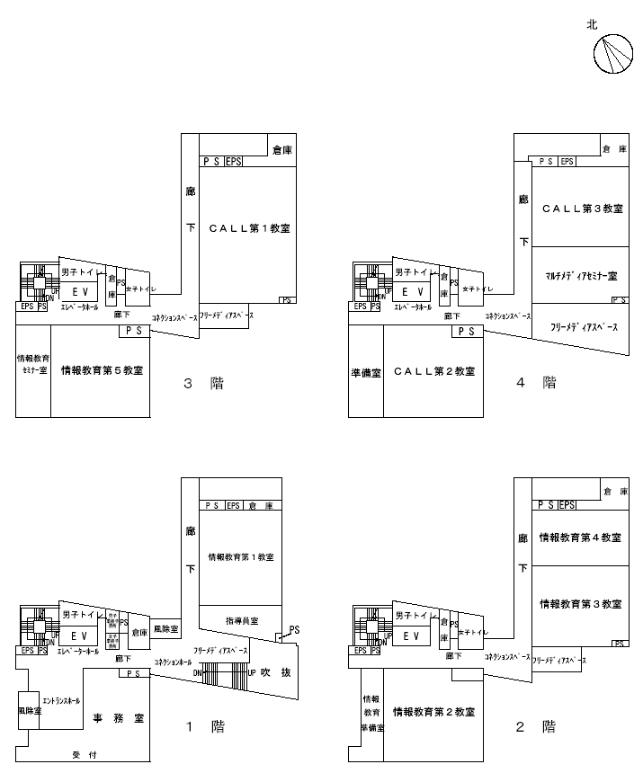 | 情報教育第5教室 | : | Linux端末 | 73台 | CALL第3教室 | : | Windows端末 | 66台 | |